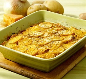 Картофель — 6-7 крупных, грибы любые — 400 г, лук — 1 шт., сливки жирные или сметана — 1 стакан, сыр — 100 г, сливочное…