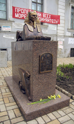 На открытии монумента присутствовали представители городских и областных властей, гости города. По традиции монумент открывали дети — гости праздника. Скульптура представляет собой бюст писателя в…