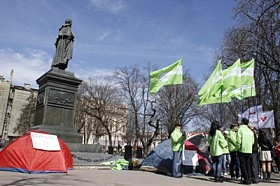 Под таким лозунгом активисты молодежных организаций политических партий «Батькiвщина» и «Фронт змiн» провели акцию протеста на Соборной площади, установив палатки у памятника князю Михаилу Воронцову….