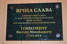 На здании государственной пожарно-спасательной части № 8 Малиновского районного отдела ГУ ГСЧС Украины в Одесской области установлена памятная доска начальнику караула капитану гражданской защиты Виктору…