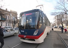 На конечной остановке трамвайного маршрута № 28 у парка Шевченко КП «Горэлектротранс» провело 14 января презентацию первого в Одессе трамвайного вагона с частично низким уровнем…