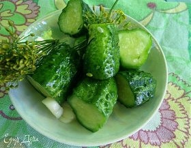 Огурцы свежие — 900 г, сахар — 1 ч. л., соль — 1 ст. л., смородиновые листья — 10 шт., укроп в виде зонтиков —…